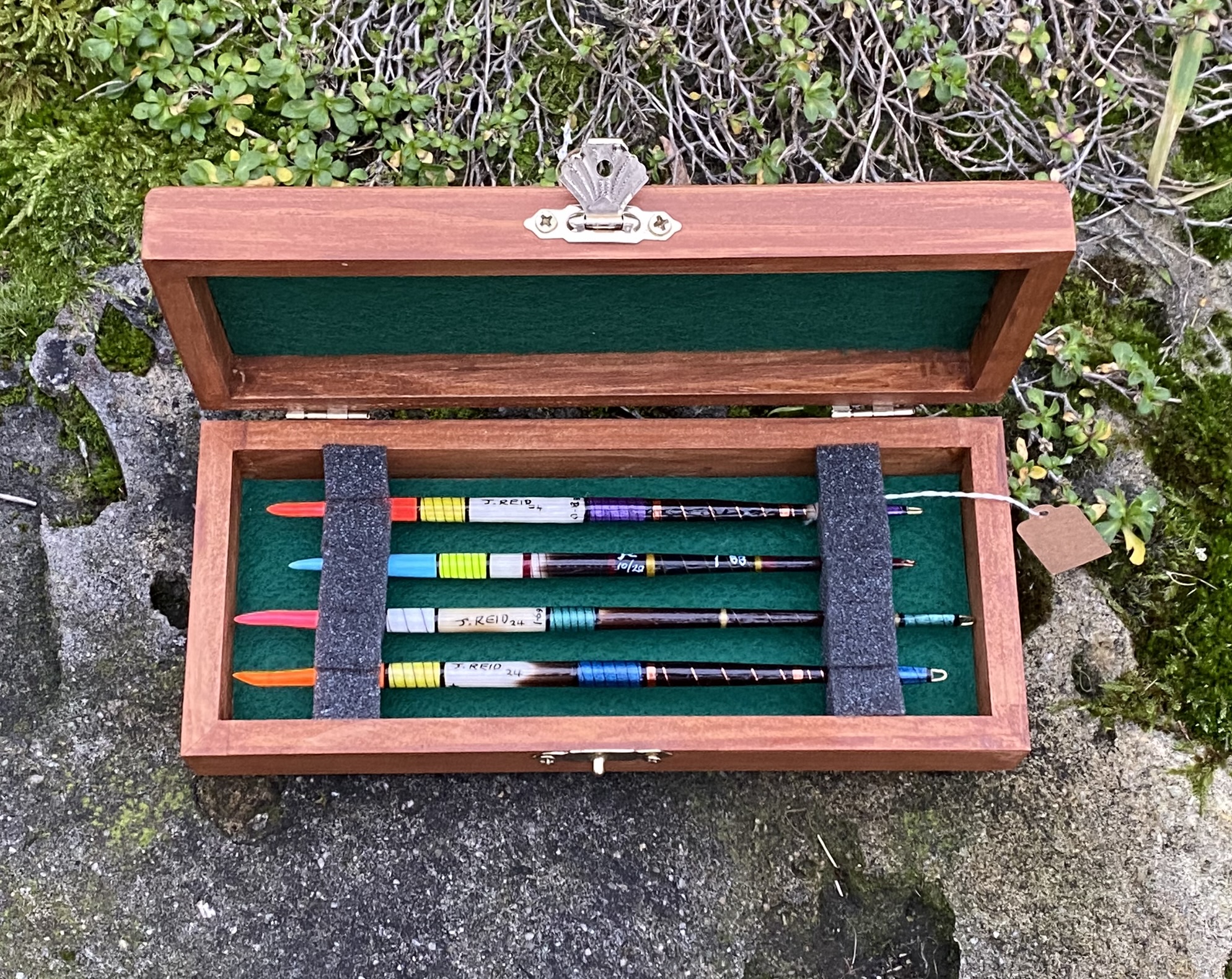 A presentation box set of four Traditional vintage style Porcupine quill floats