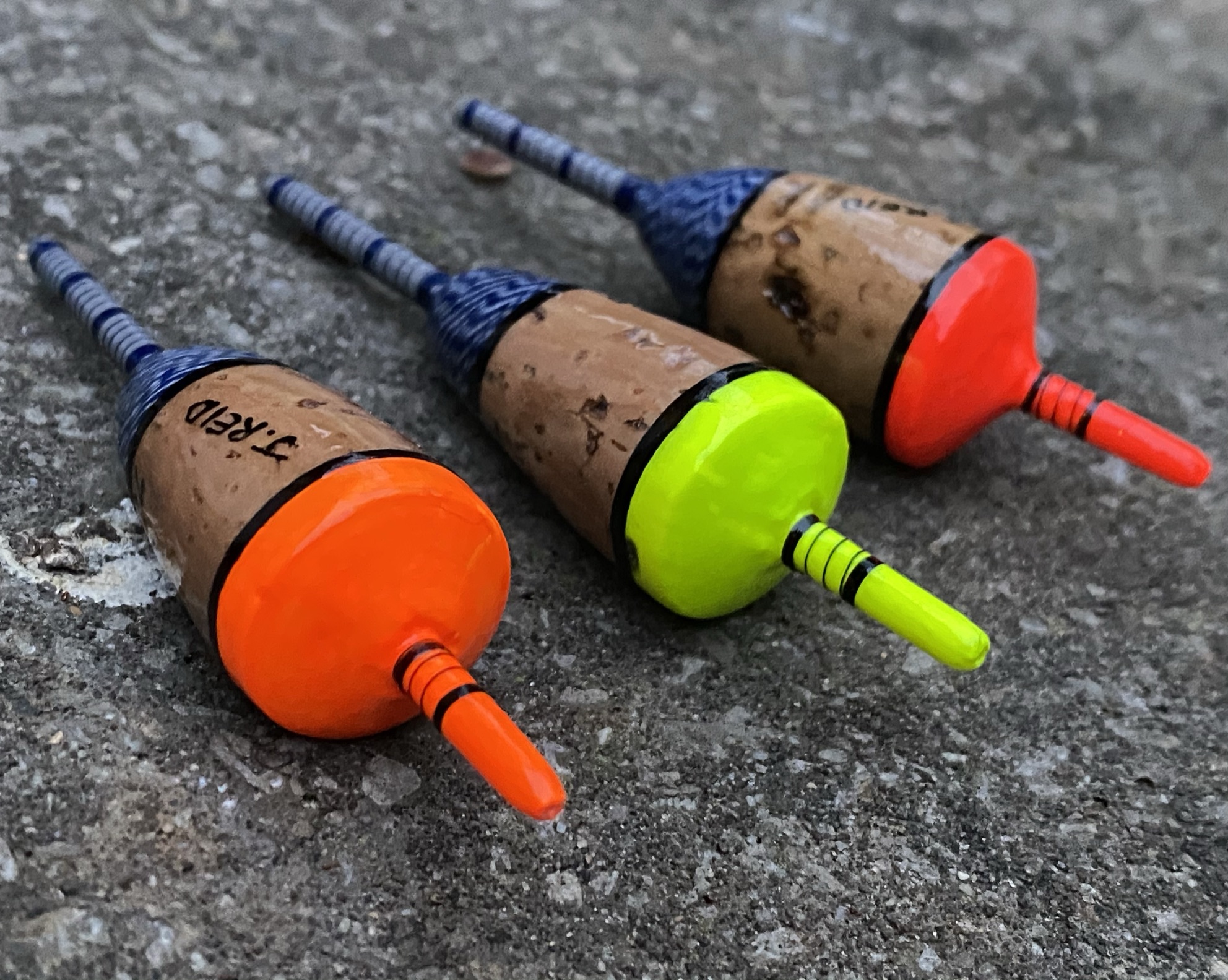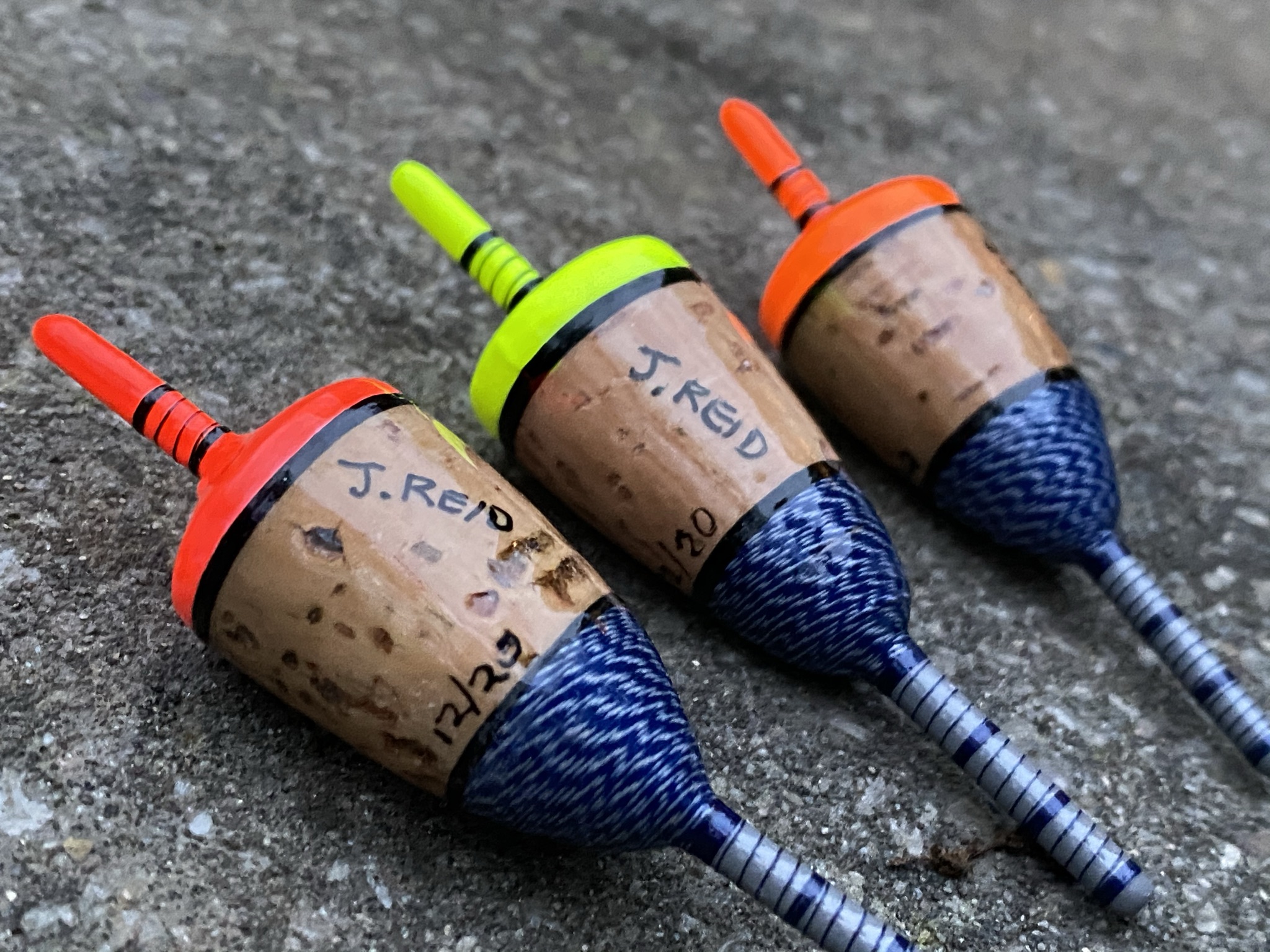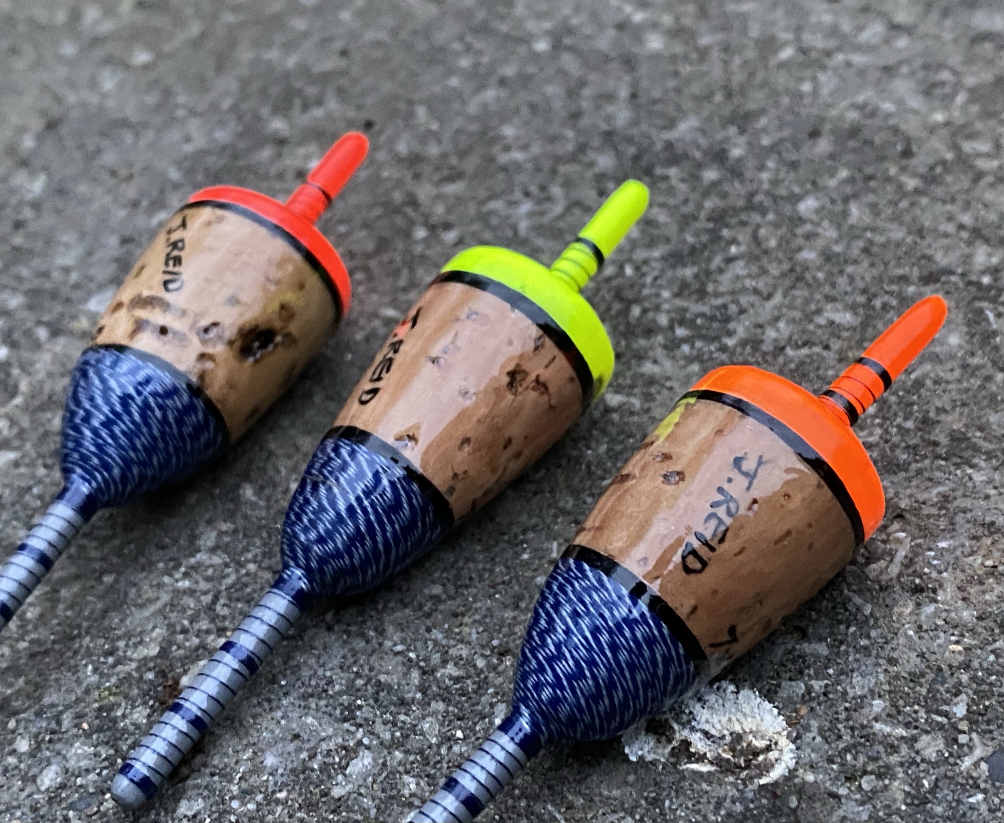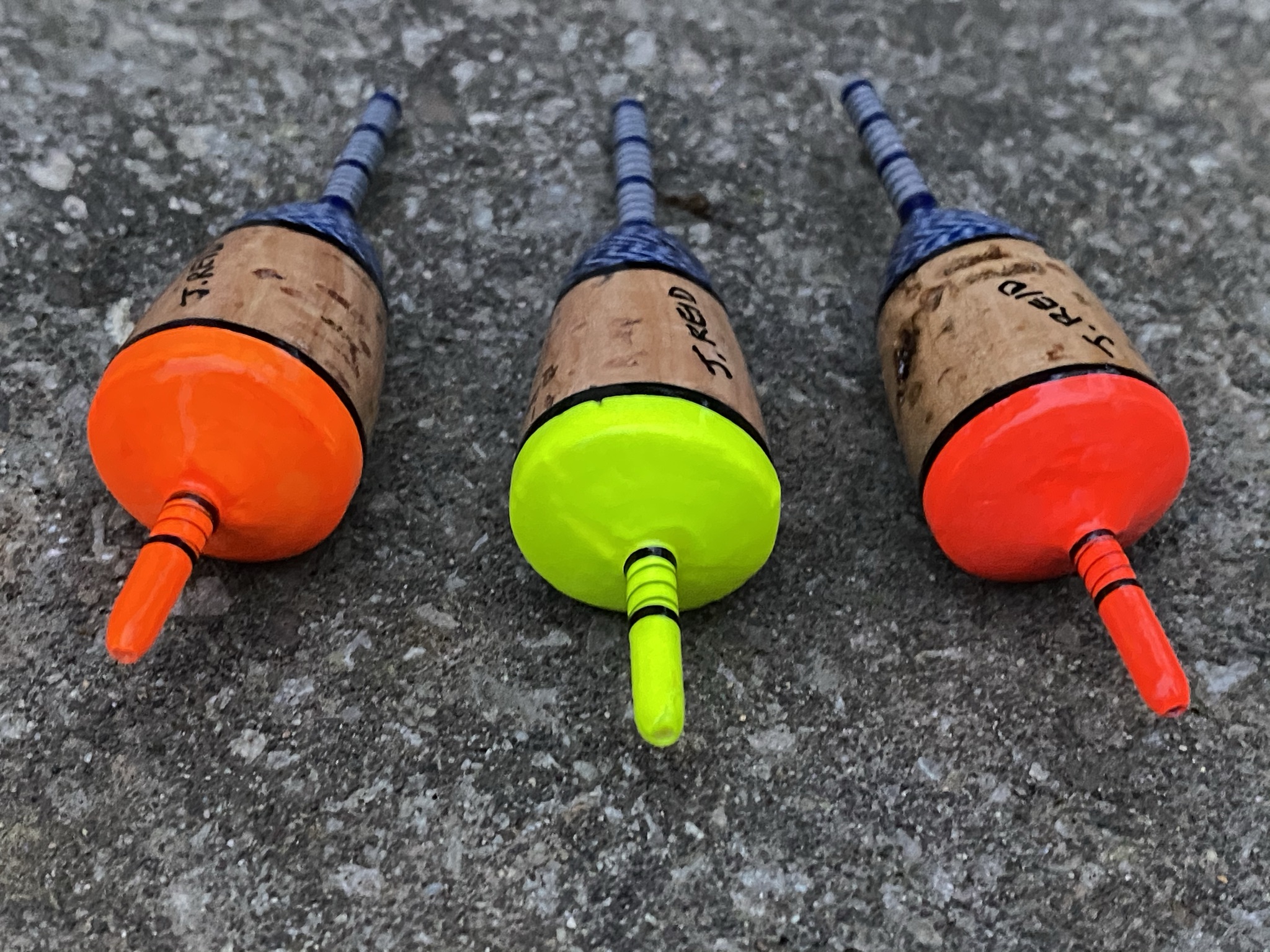 I have made these floats from Cork body’s & crow quill painted tips & stems; next I have dressed them with vintage jasper blue-white, blue and black silk thread. Finally, each have a minimum of 10 coats of lacquer.