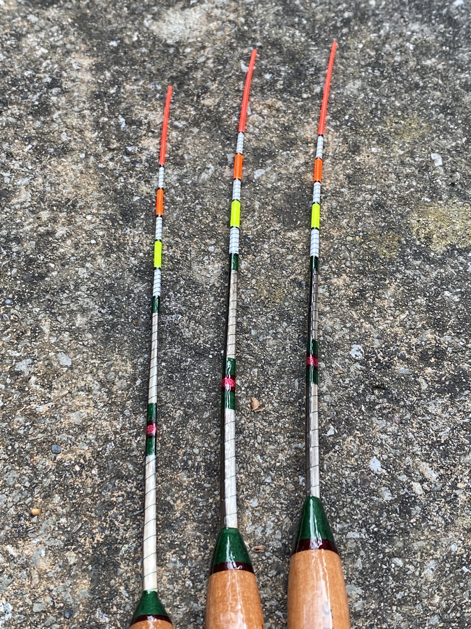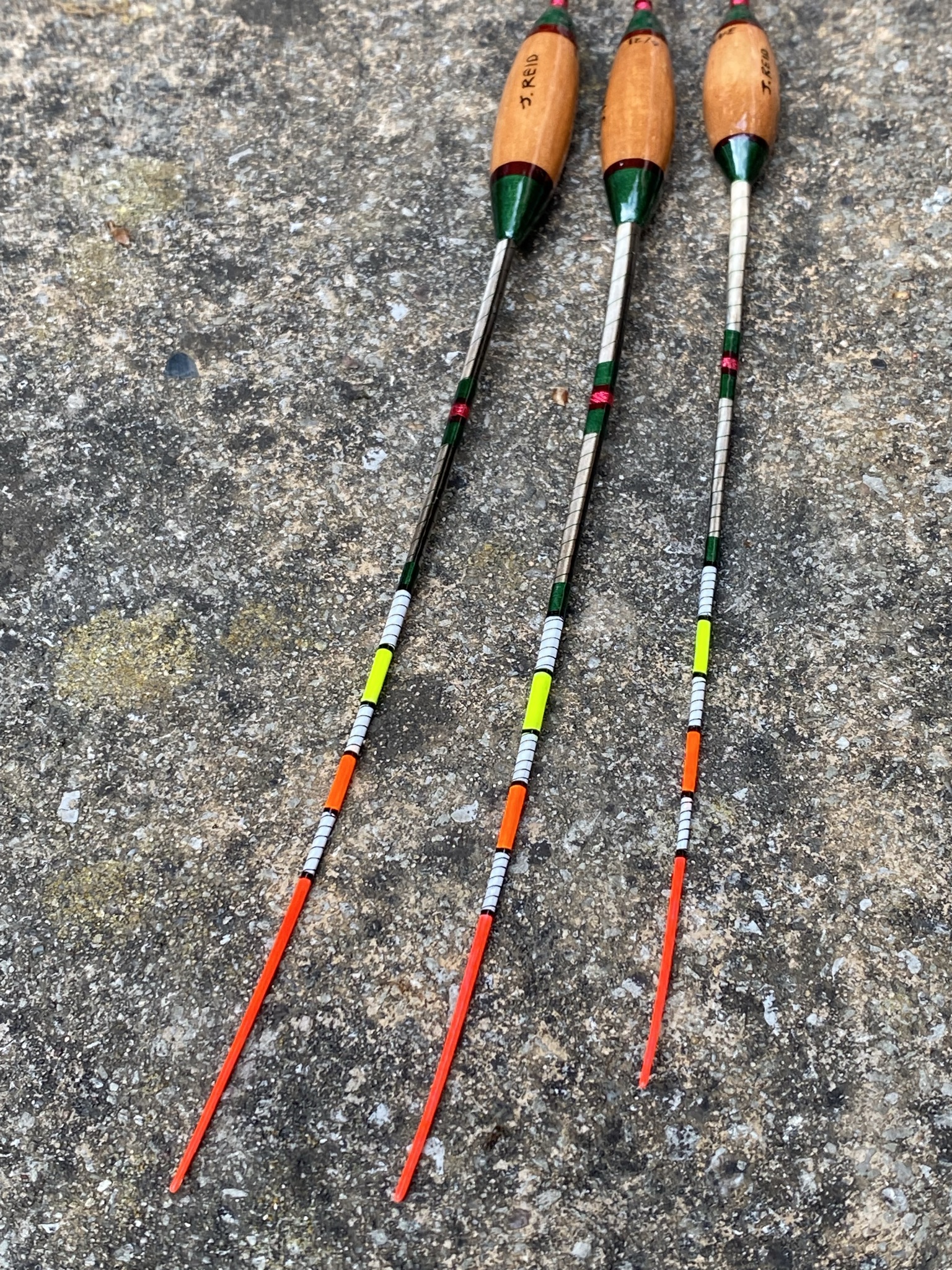 These floats are made from a stained balsa body, a painted crow Quill tip with a wiped stem, next, they are dressed and lined using forest green, black & claret silk thread with metallic pink thread. Finally, they all have a minimum of 10 coats of lacquer.